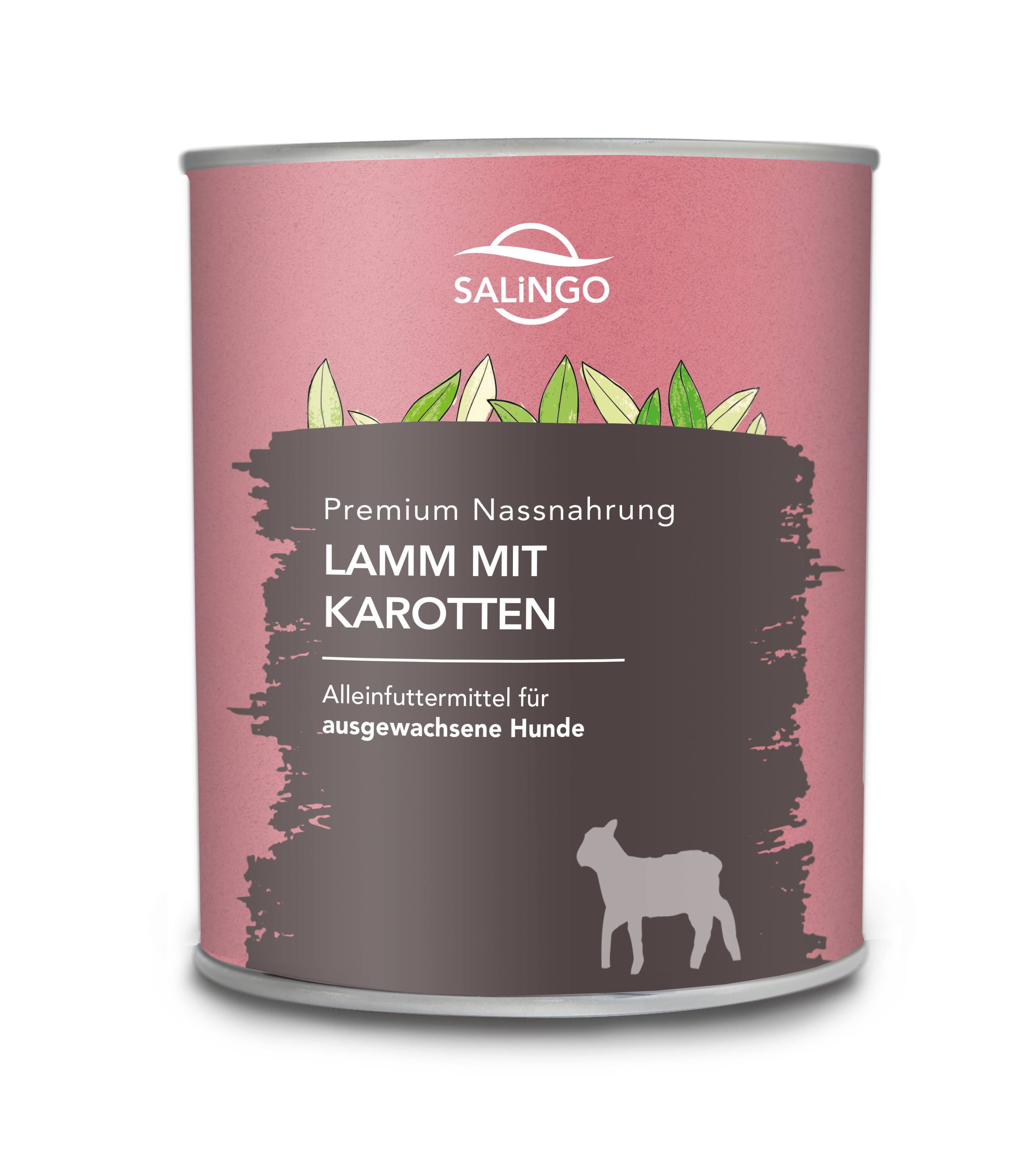 SALiNGO Agneau avec carottes est une nourriture humide équilibrée et adaptée aux besoins naturels, en composition multi-viandes pour les chiens de toutes races. Les boîtes avantageuses de 800 g ont été spécialement conçues pour les chiens en bonne santé et en forme, qui n'ont aucun problème avec plusieurs types de viandes dans un repas. Les matières premières son t de qualité premium, tout comme nos variantes à protéine unique.